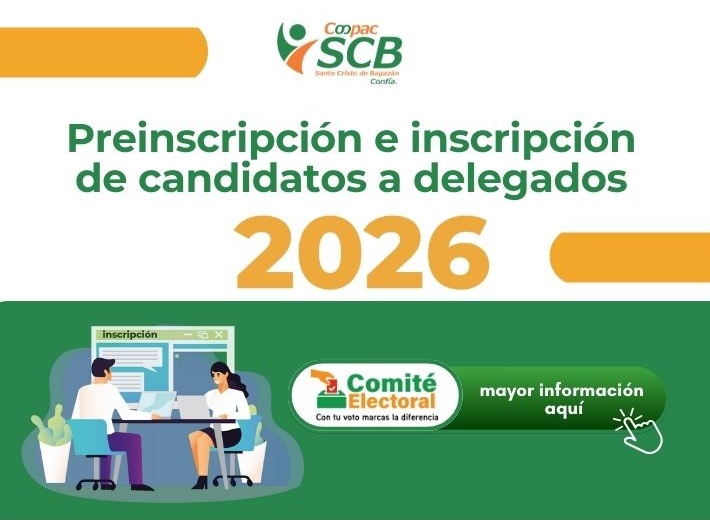 Estimado socio, queremos invitarte a participar de la PREINSCRIPCIÓN E INSCRIPCIÓN DE CANDIDATOS A DELEGADOS 2026 a través de nuestras fichas, descárgarlo y preséntarlo en nuestras oficinas.REQUISITOS DE CANDIDATOS A DELEGADOSTener condición de socio mayor a un año.